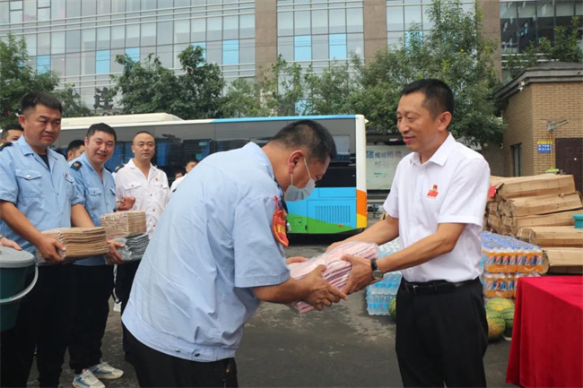 黨委書記、董事長孟令軍代表集團領(lǐng)導班子向所有在高溫下奮戰(zhàn)和堅守的客運一線職工表示感謝,并囑咐大家在為廣大市民提供服務(wù)的同時,要做好自身防暑降溫,合理安排好調(diào)休時間,保證身體健康。要求各單位黨政工團組織切實將關(guān)心關(guān)愛職工落到實處,擴大活動的覆蓋面,確保一線職工的身心健康,全力保障市民平安出行。