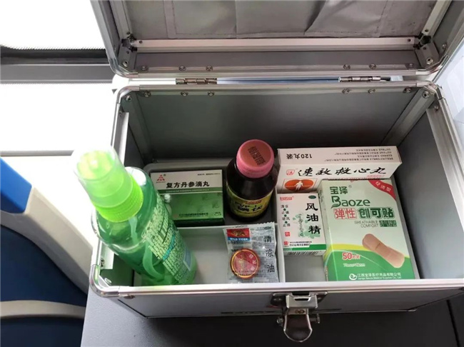 今年7月,胡影自己“裝扮”起了車廂,在業(yè)余時間購置了便民醫(yī)藥箱、一次性雨衣、手套、口罩、留言簿以及溫馨提示語。胡影說:“夏天的雨經常猝不及防,很多人出門沒帶傘,車上備些防雨用具,可以方便乘客。”