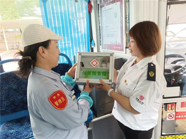 209路車隊(duì)的每臺(tái)單車上新增配置了印有“紅十字”標(biāo)志的便民服務(wù)箱,里面放置了口罩、速效救心丸、止血帶、碘伏等日常使用的各類物品。廣大乘客在乘坐公交車時(shí),一旦出現(xiàn)緊急情況,可以得到及時(shí)有效的幫助和初級(jí)救治。