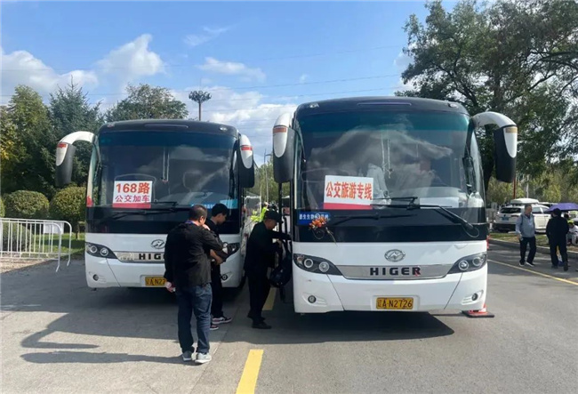 華龍公司開通公交旅游專線(沈陽(yáng)北站至棋盤山景區(qū))和“沈水之陽(yáng) 我心向往”秋韻情意濃“十一”旅游免費(fèi)直通車線路(沈陽(yáng)市府廣場(chǎng)至祝家小鎮(zhèn)),為游客提供安全、舒適、便捷的乘車體驗(yàn)。