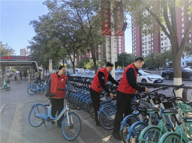 活動中,志愿者們身穿紅馬甲,拿著清掃工具來到活動地點(diǎn),重點(diǎn)對社區(qū)道路、綠地、樓道車庫等公共區(qū)域進(jìn)行清掃清潔,對住宅區(qū)內(nèi)生活垃圾、亂堆雜物等進(jìn)行徹底清理,對公共設(shè)施上小招貼和噴涂廣告進(jìn)行清除,擺放零散無序的共享單車。