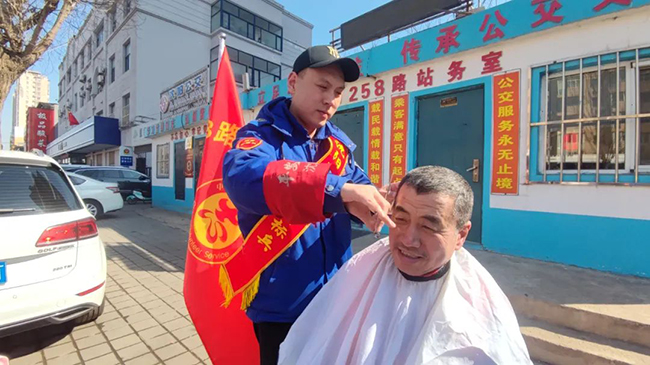 通利、康龍公司258路車(chē)隊(duì)的職工們化身志愿者為外地乘客進(jìn)行路線引導(dǎo)咨詢、景點(diǎn)游覽解說(shuō),來(lái)到公交車(chē)站附近維持秩序、清潔環(huán)境、擺放共享單車(chē),并為環(huán)衛(wèi)工人免費(fèi)理發(fā)。