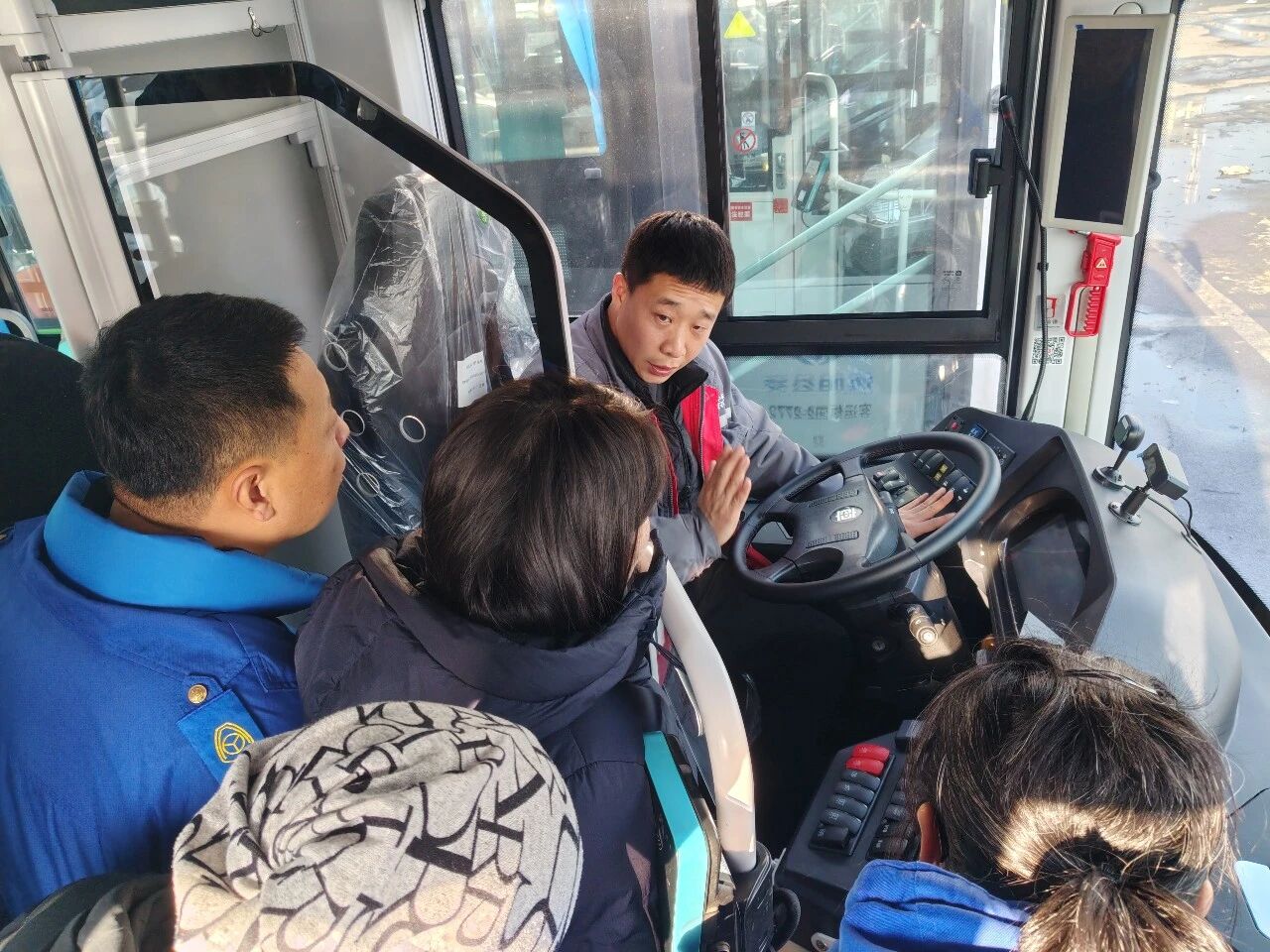 培訓(xùn)中,主講人系統(tǒng)介紹了新投運公交車輛的整體情況,并圍繞內(nèi)外設(shè)備、中控系統(tǒng)、動力與制動系統(tǒng)以及關(guān)鍵零部件等核心內(nèi)容,進行了實地講解,幫助參訓(xùn)人員建立對新車型技術(shù)結(jié)構(gòu)及運行特點的框架性認(rèn)知。針對新車技術(shù)狀態(tài),培訓(xùn)明確了相應(yīng)的維護保養(yǎng)標(biāo)準(zhǔn),詳細(xì)講解了運營前檢查要點、行車安全注意事項以及常見故障處理方法。
