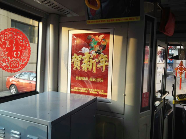 沈陽客運(yùn)集團(tuán)公司精心布置了車輛,粘貼了新年祝福標(biāo)語、福字、窗花,懸掛中國結(jié)和小燈籠,在車廂內(nèi)進(jìn)行裝飾,營造出移動的溫馨家庭感覺。